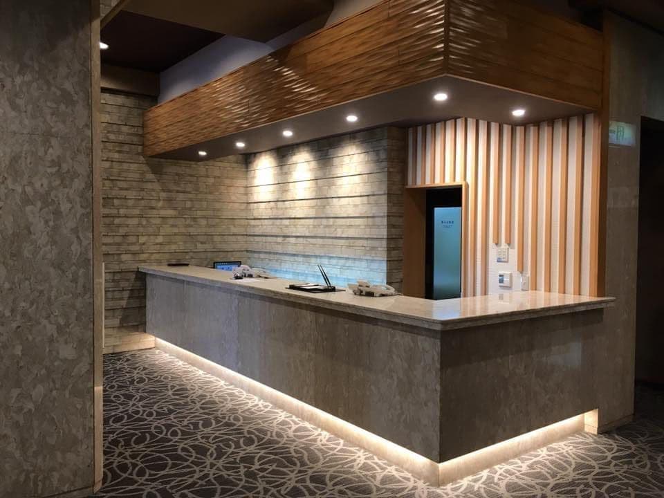 No.194 ホテル高砂 様 フロント改修工事 (2017年11月10日 完成) ホテル高砂様のフロント改修工事をさせていただきました!長年、お客様との出会いを交わしたカウンターはそのままで、内装は、近頃多いインバウンドのお客様を意識して和テイストに!住宅とはまた違う楽しさがあって良い経験が出来ました(^^) ↓画像はクリックで拡大します↓ Before After 既存のカウンターがリニューアルした事によって浮かないように、色合いには特に気を付けました。
