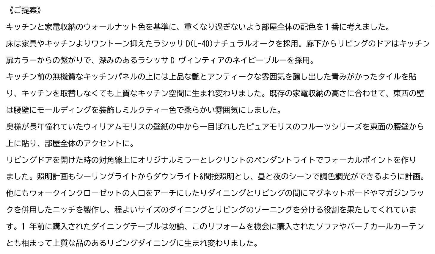 1年前にお気に入りのダイニングテーブルを購入し、この機会にリビングダイニングをリフォームをしようと決意しましたが、なかなか自分の想いを叶えてくれる業者にめぐり合えず、ずっと悩み続けて1年後にやっと「もしかしたら、自分の理想のリビングダイニングにリフォームをしてくれるかもしれない!」