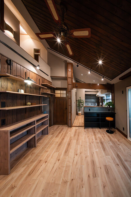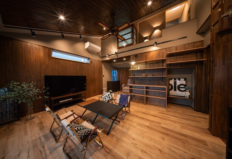 元々の高低差を上手く活用して、ご主人様ご要望のヴィンテージな雰囲気を素材とカラーでリビング空間を整えました🤎🖤