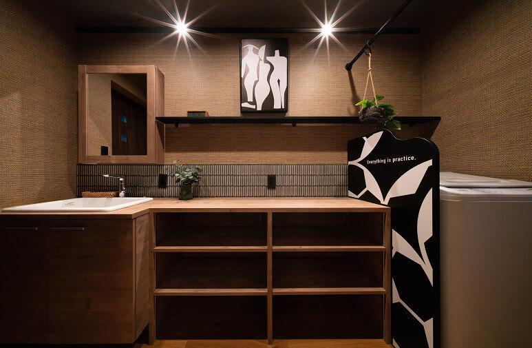 「Everything is practice.(すべては練習のなかにある)」をアートに加えてカッコいい水まわり空間に仕上げました⚽️