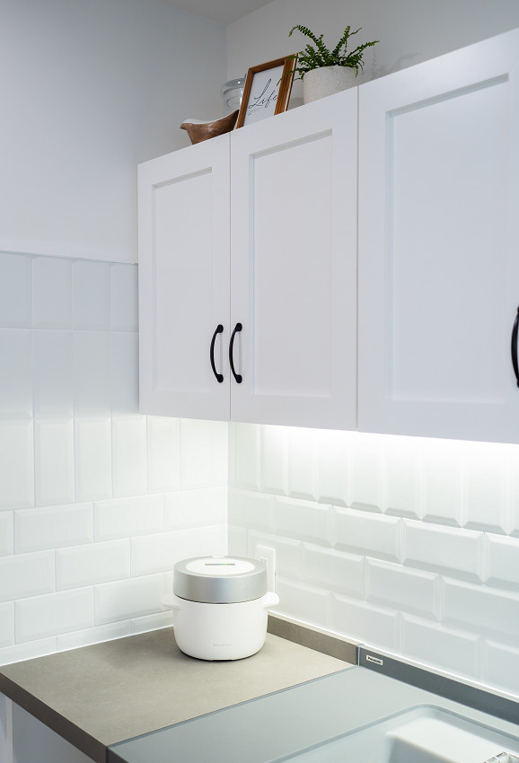 奥様が思い描いていたのは、清潔感とやさしさに満ちた白いキッチン。その想いをかたちにするために選んだのは、パナソニックの「ラクシーナ」。