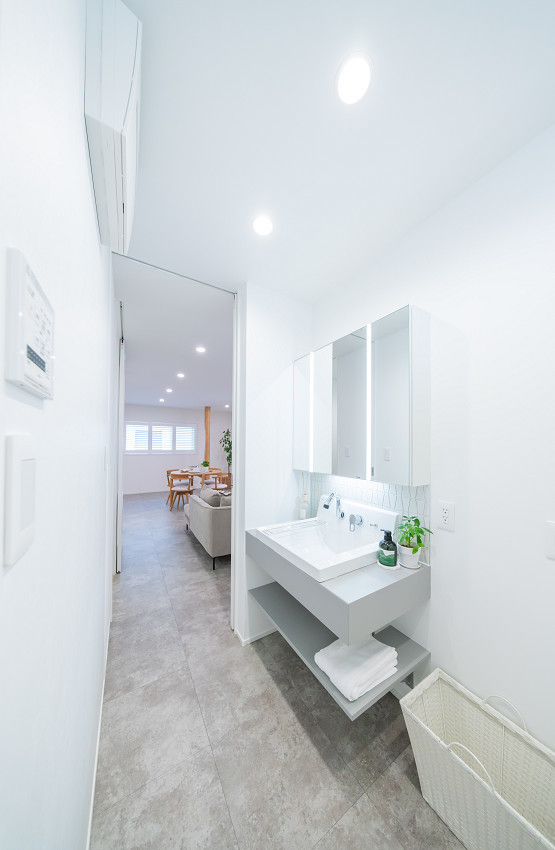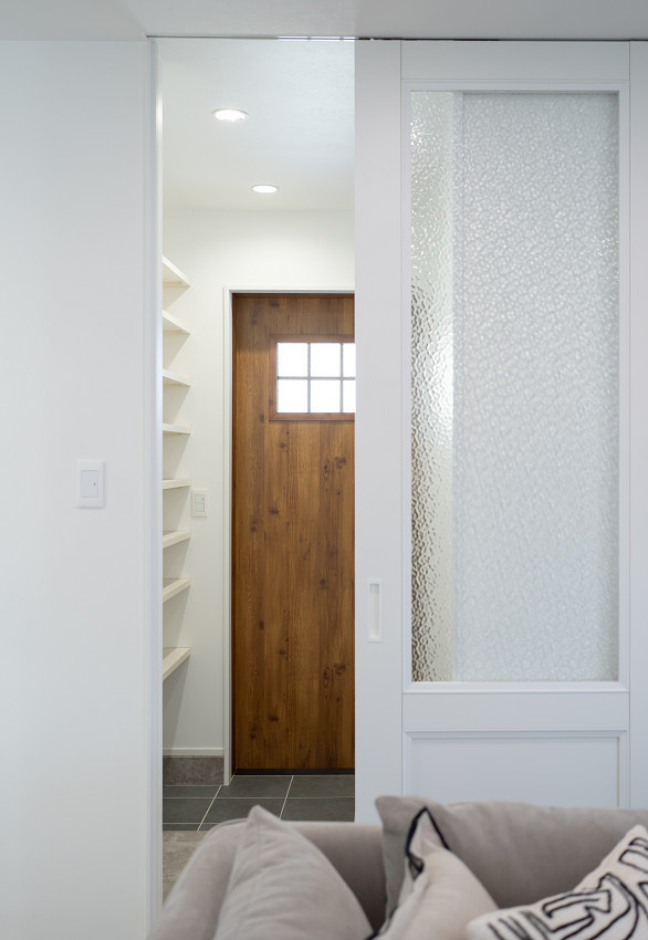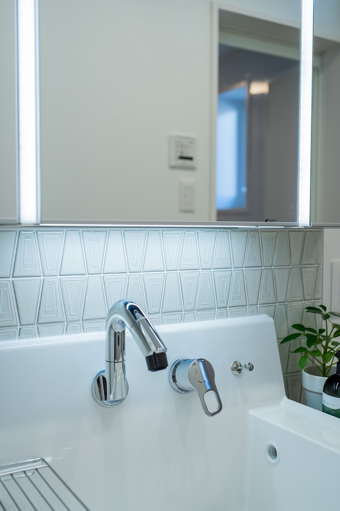 カマチ扉のやわらかな表情に合わせて、名古屋モザイクの「サテリッティ(SATELLITI)」マットホワイトをセレクトしました♩