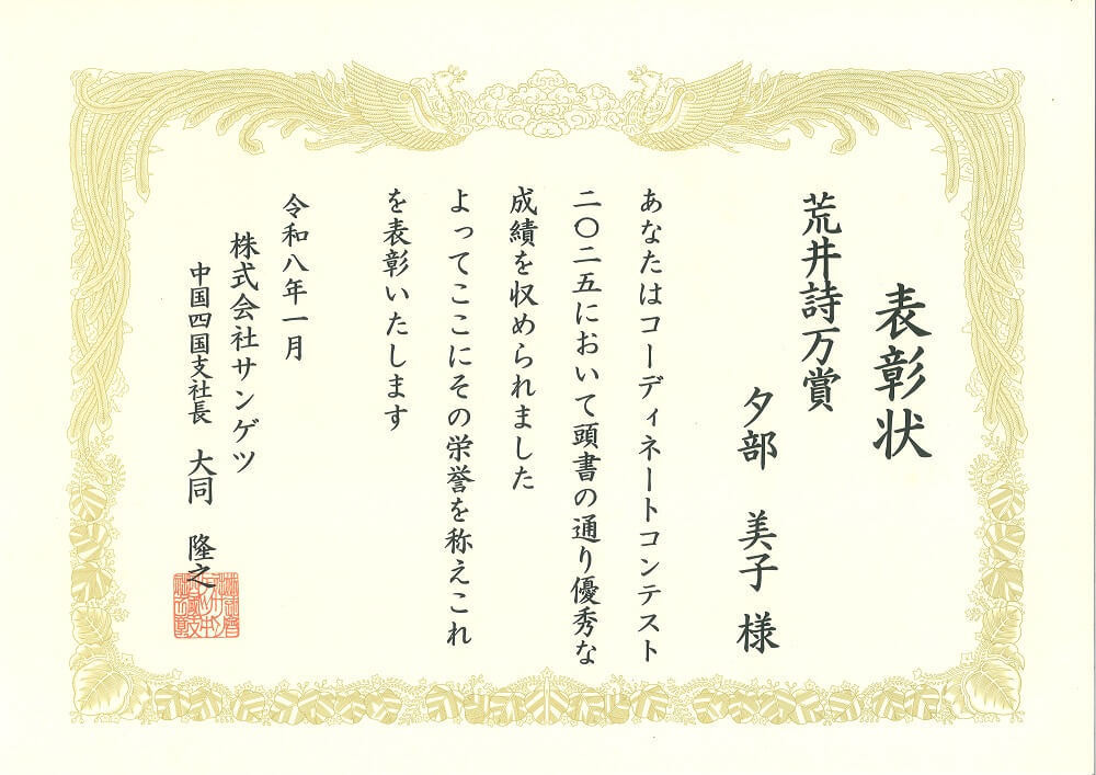 ≪全国優秀賞≫ ≪中・四国支部長賞≫ ≪中・四国支部特別賞≫