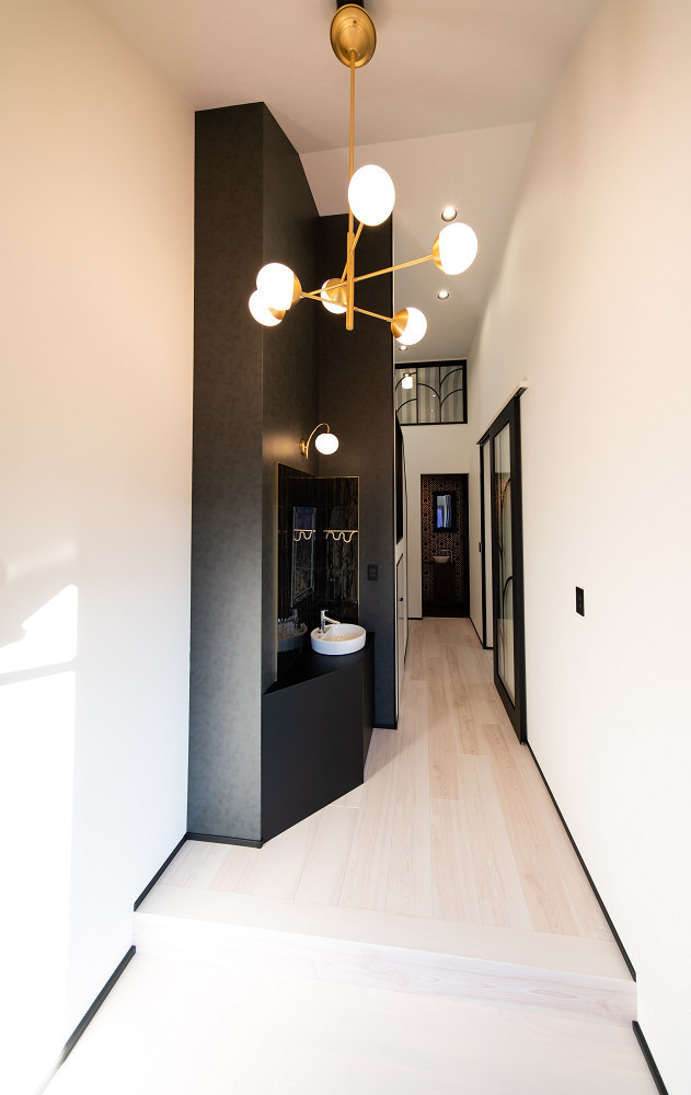 になりがちである。この作品では、階段下を思いきって開けて視線の通りを良くしただけでなく、小上