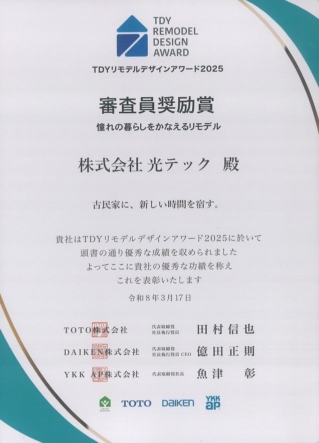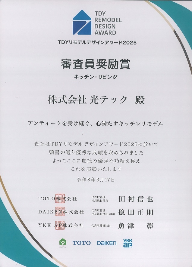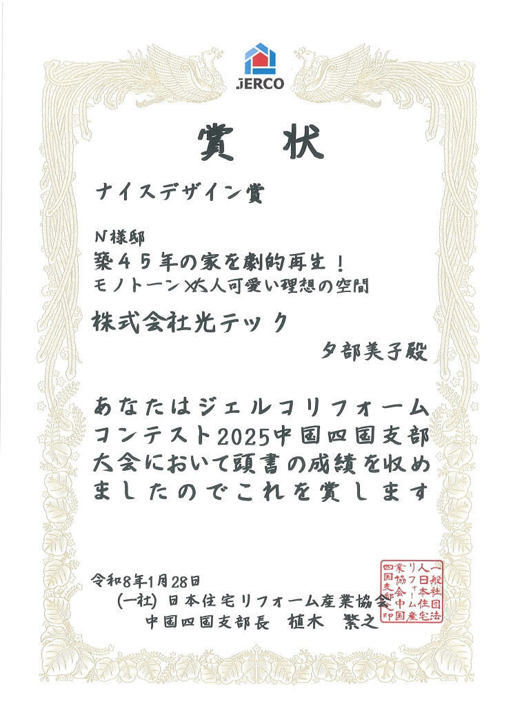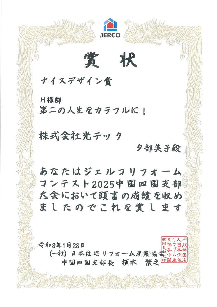 当店は全国デザインリフォームコンテストにおいて、高知県No.1の受賞数を誇っております。