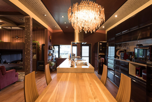天井の間接照明も手伝ってラグジュアリーなパーティー空間に。