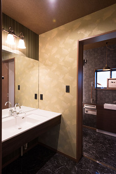 クロスの張り分けと間接照明でリゾートホテルをイメージして創り込んだ