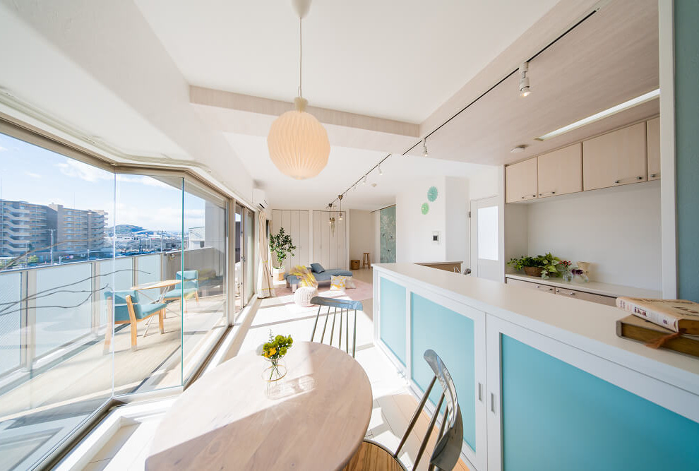 爽やかなスカイブルーカラーがとっても素敵で気持ちの良いLDKになりました!今回のリフォームでDIYに挑戦できたことも嬉しかったです!友達も遊びに来てくれた時に凄く褒めてくれるので嬉しいです。