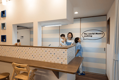キッチンも夢だった対面式になって、家電や食器も隠せるので以前に比べて片付ける