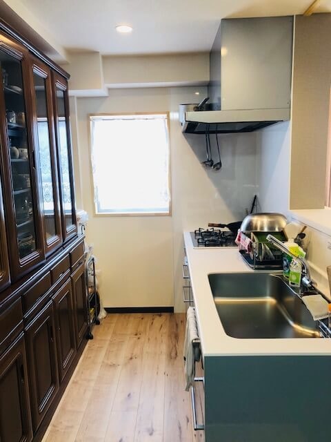 キッチンと食器棚の間がちょっと狭いかなぁと思いましたが(73cm)この狭さが逆に心地よくて夜はここでお酒を飲むのが至福のひとときです(笑)