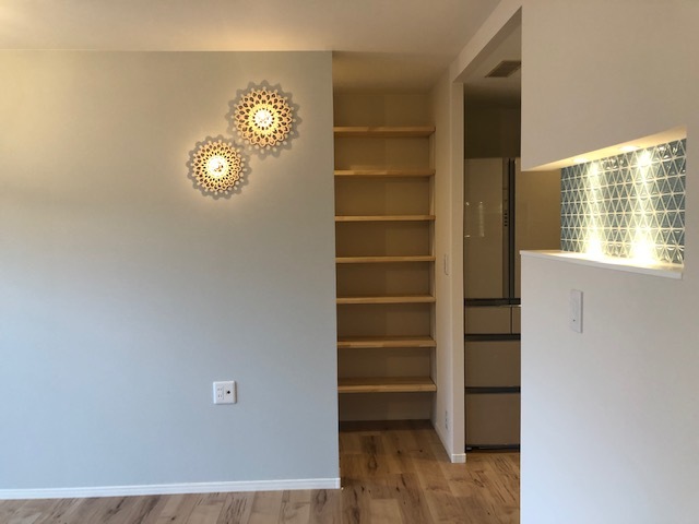 ご主人様からは、「とにかく最高!半分ぐらいは頭の中でイメージ出来ていましたが 予想をはるかに超える仕上がりに感動です。夕部さんがこだわってくれた間接照明でキッチンの雰囲気が全然ちがいます!
