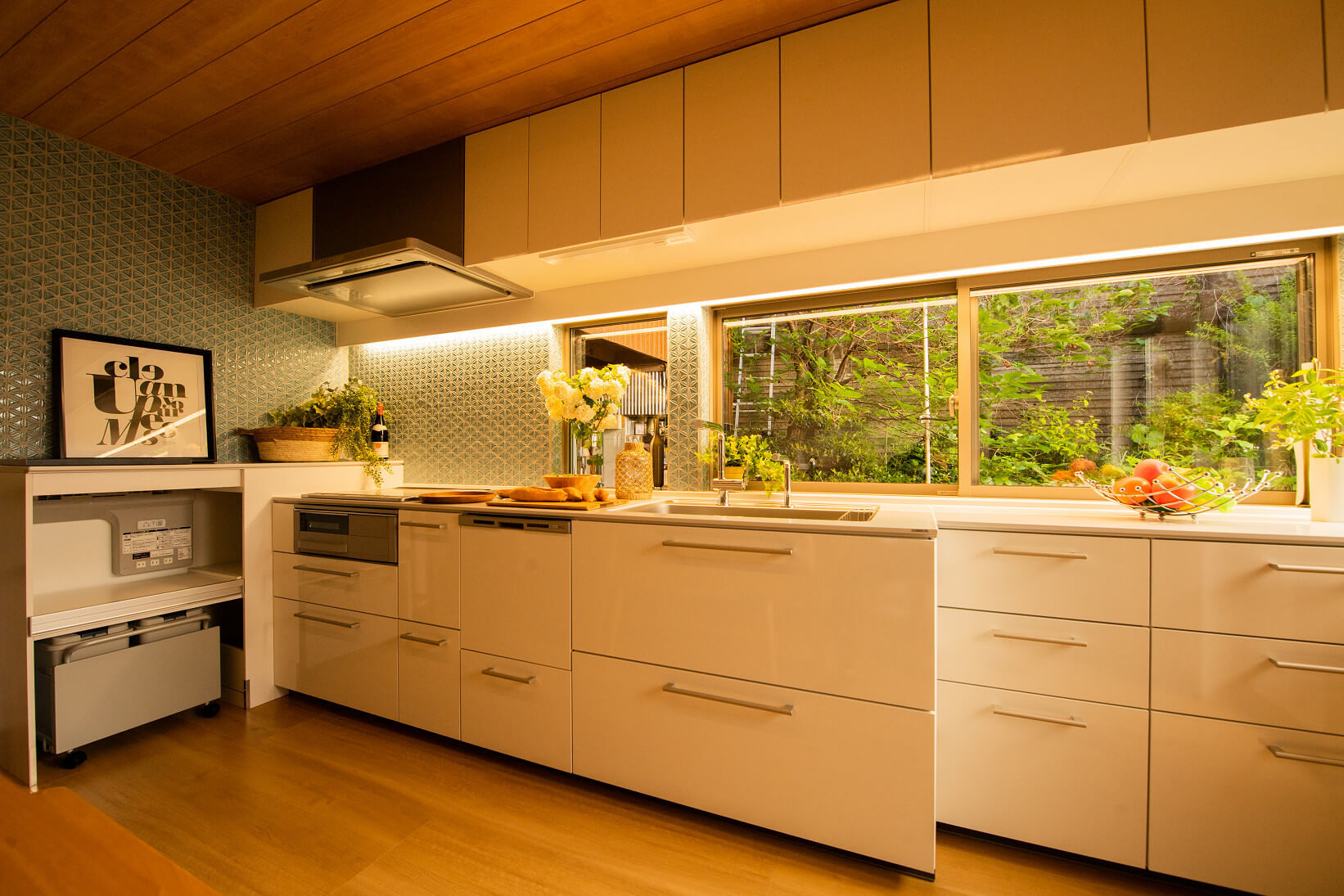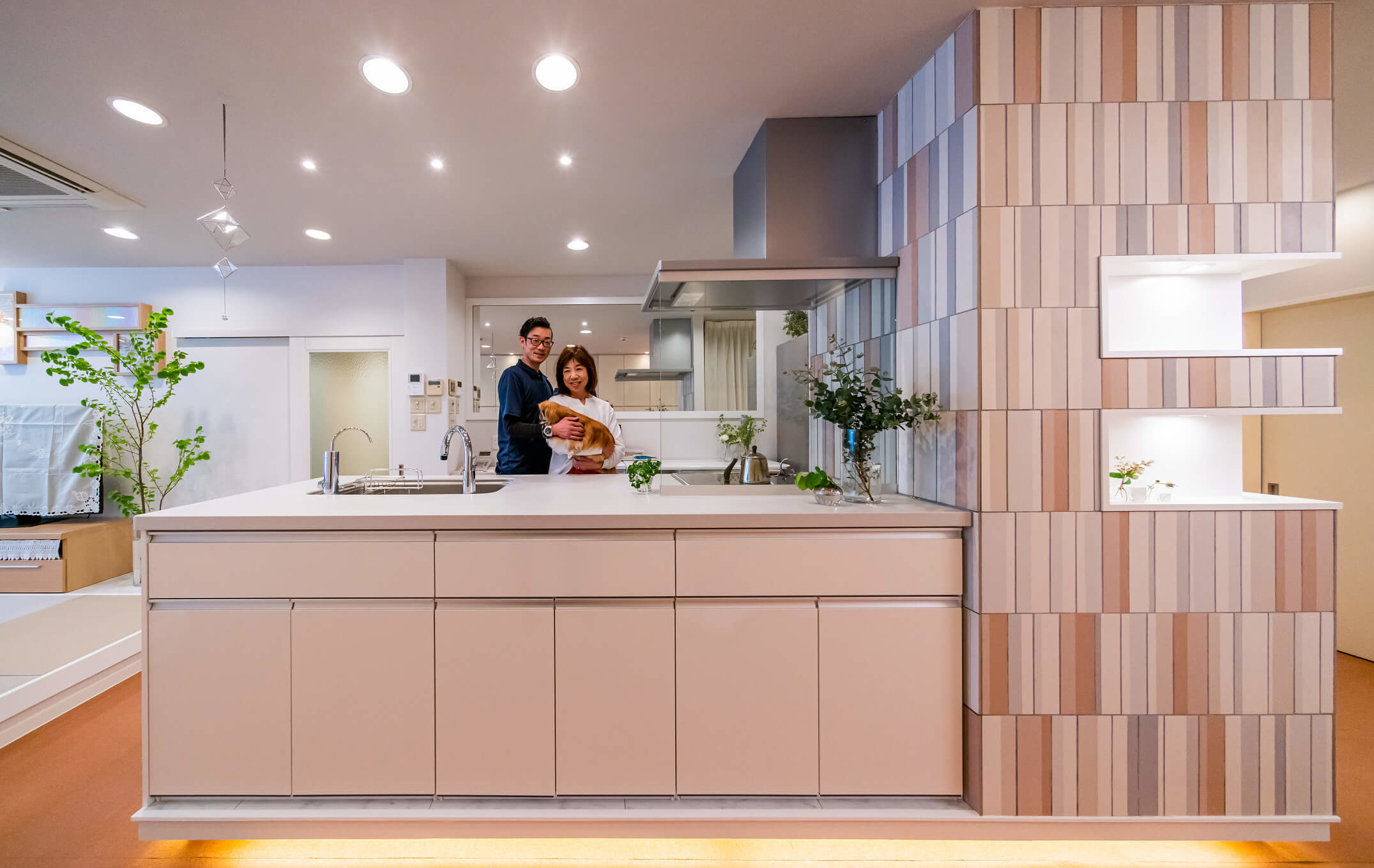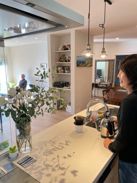 憧れていた対面キッチンになって本当に嬉しい!お料理をする事が楽しくなりました。第二の人生をこれからゆっくりと過ごしていきたいと思います。フラワーアレンジメントのレッスンをしても飾る場所ができたのでレッスンのし甲斐があります。友達もたくさん招いてホームパーティーもしたいなと思っています。