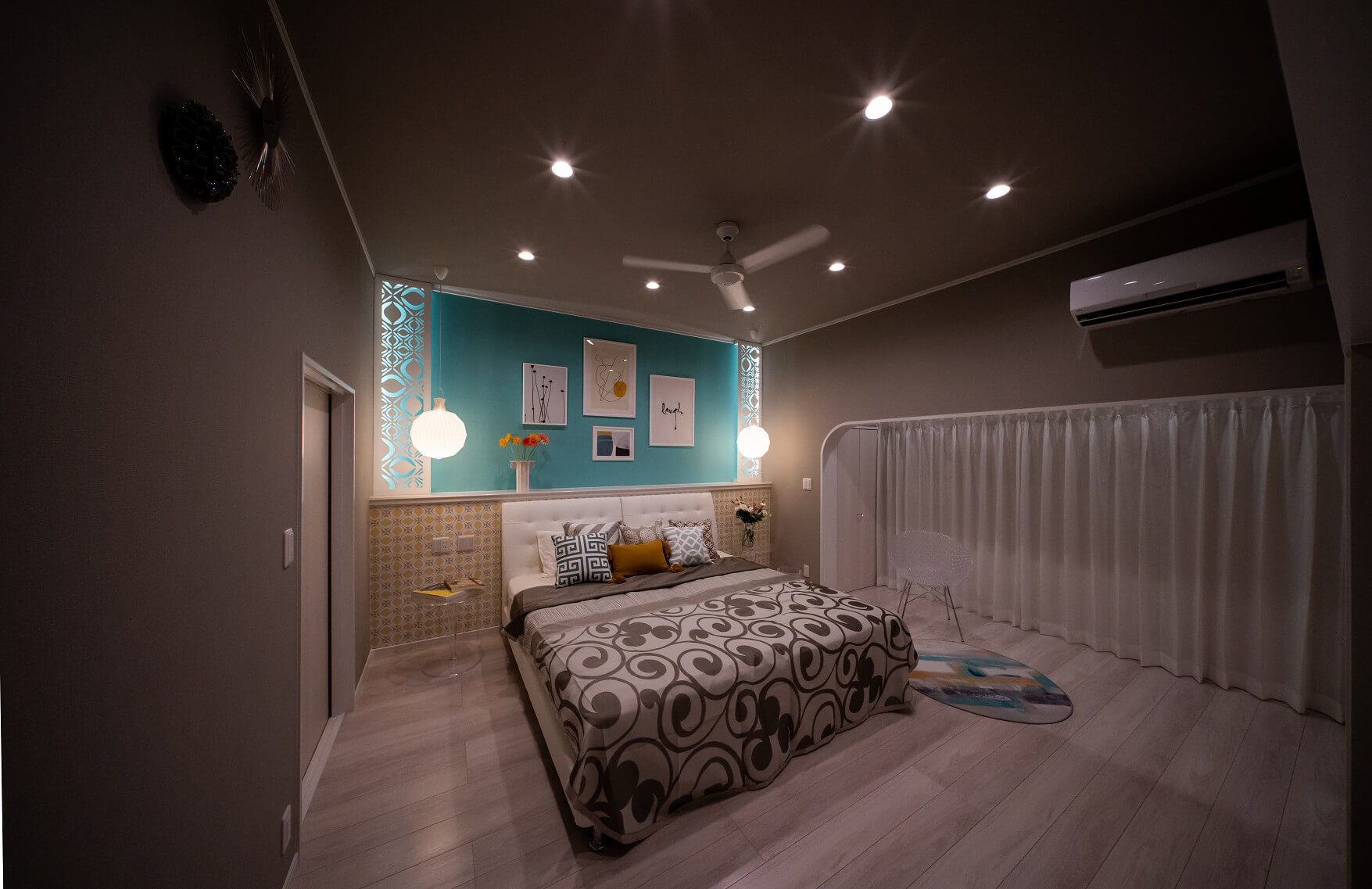 今回、ベッドカバーから全てのインテリを夕部さんにお任せしましたが、本当にその選択は間違っていなかったです!だってこんなに素敵な空間には自分では出来ませんもの。主人もベッドの上にパソコンを持ち込んで仕事をしたりとちょっと旅をした気分でベッドルームを楽しんでいます。家族や友達からも大絶賛でした!