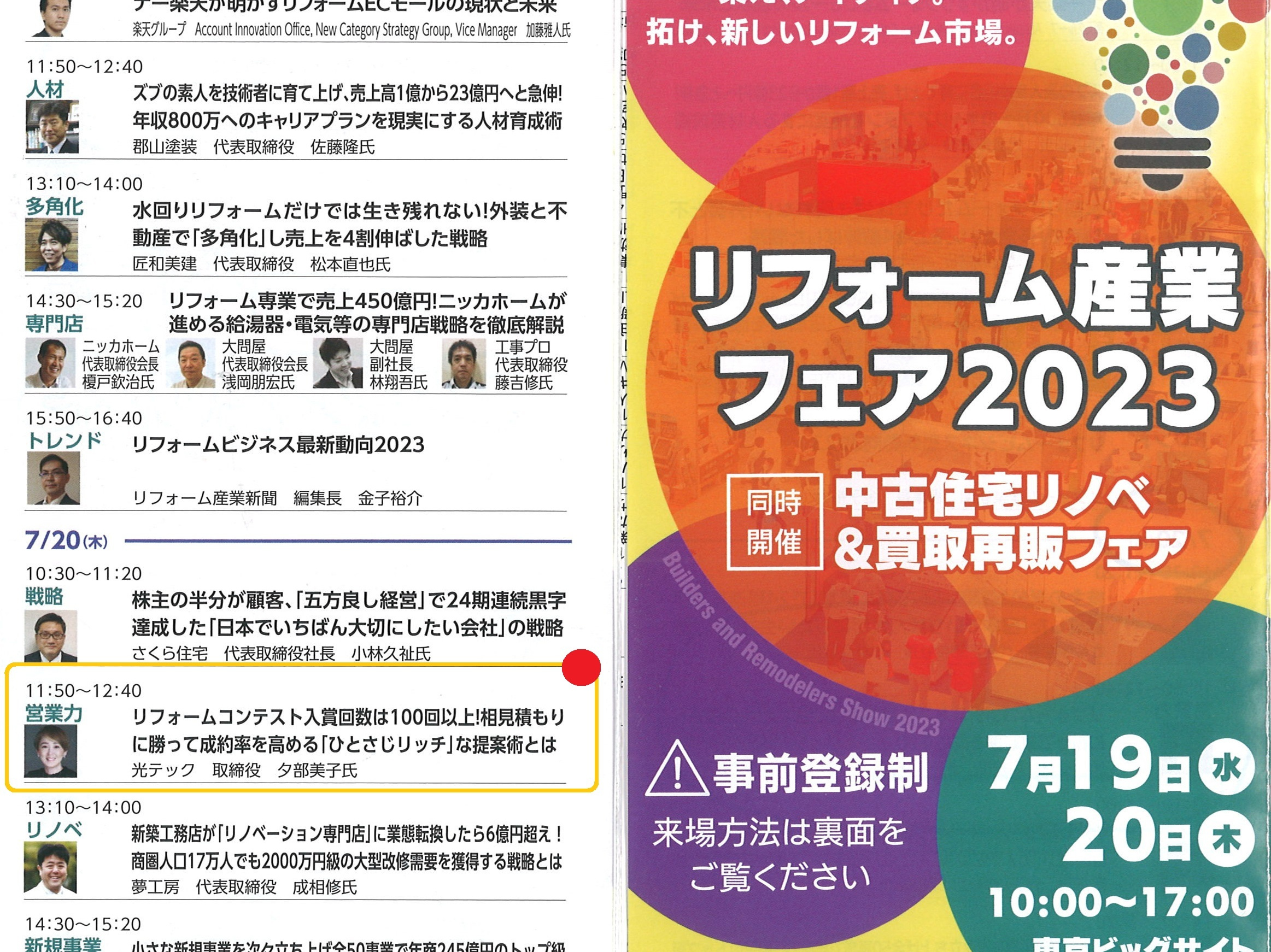 「TDYリモデルスマイル作品コンテスト入賞店特別セミナー」講師を努めました。